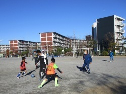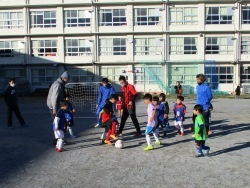グランドを3面に分けて各学年毎、それぞれに親子でサッカーを楽しみました。